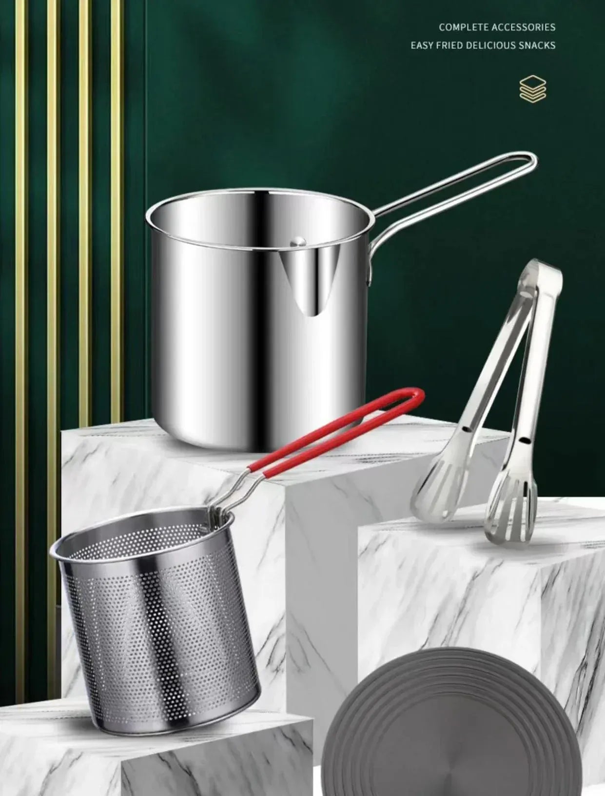 Ta wielofunkcyjna frytkownica może służyć zarówno jako koszyk do smażenia, jak i mały garnek, dzięki czemu idealnie nadaje się do przyrządzania codziennych potraw – od chrupiącego kurczaka i frytek, po warzywa i pierogi. Kompatybilna ze wszystkimi rodzajami kuchenek, w tym gazowymi i indukcyjnymi , zapewnia profesjonalne rezultaty smażenia w domu.