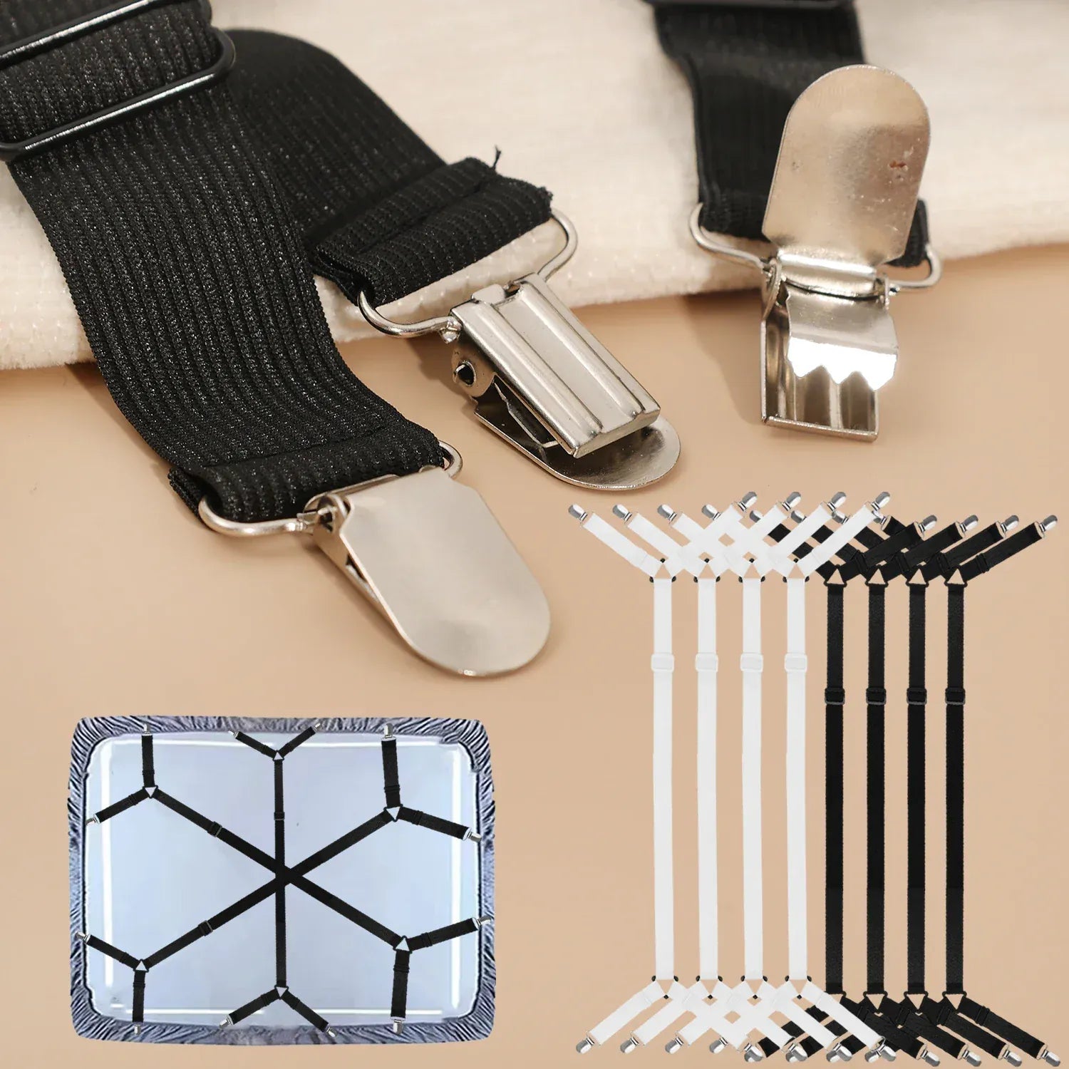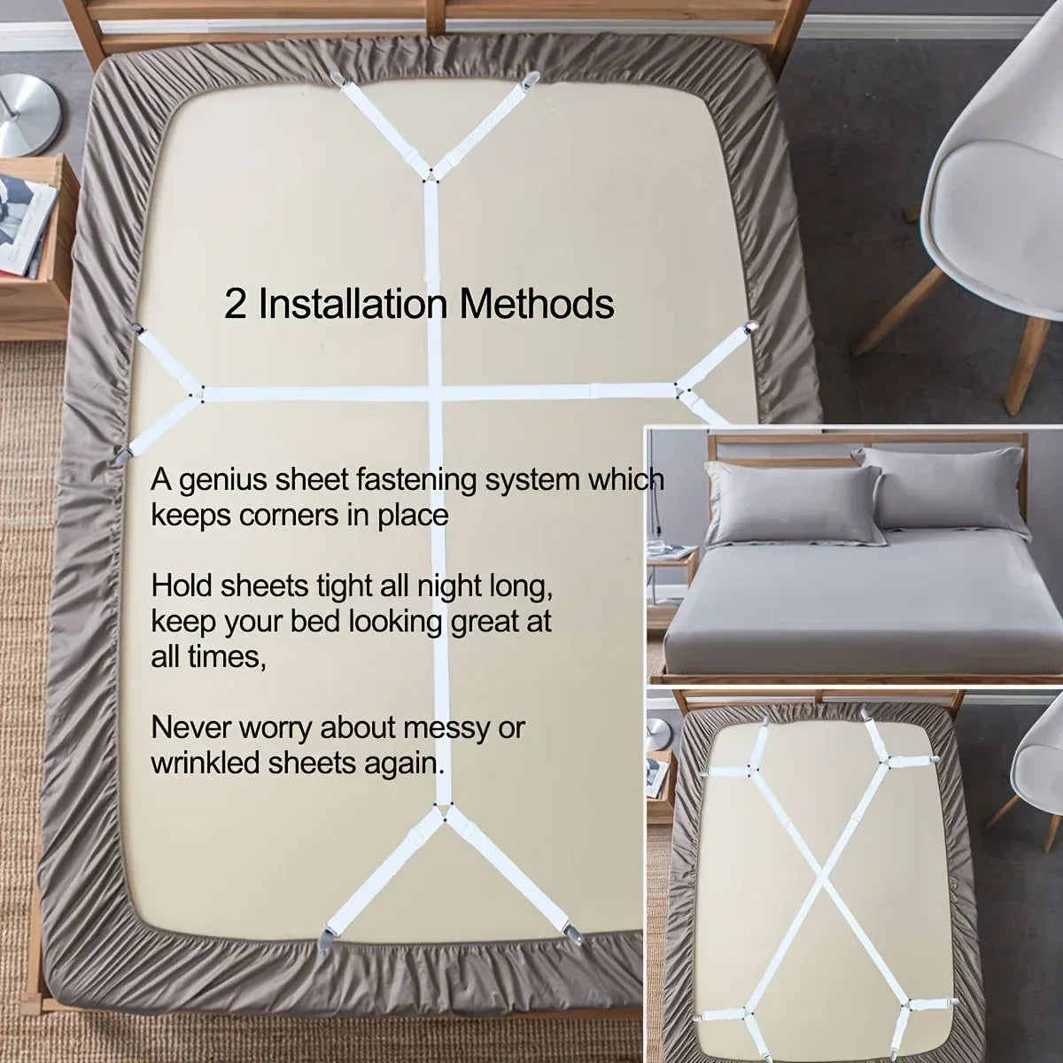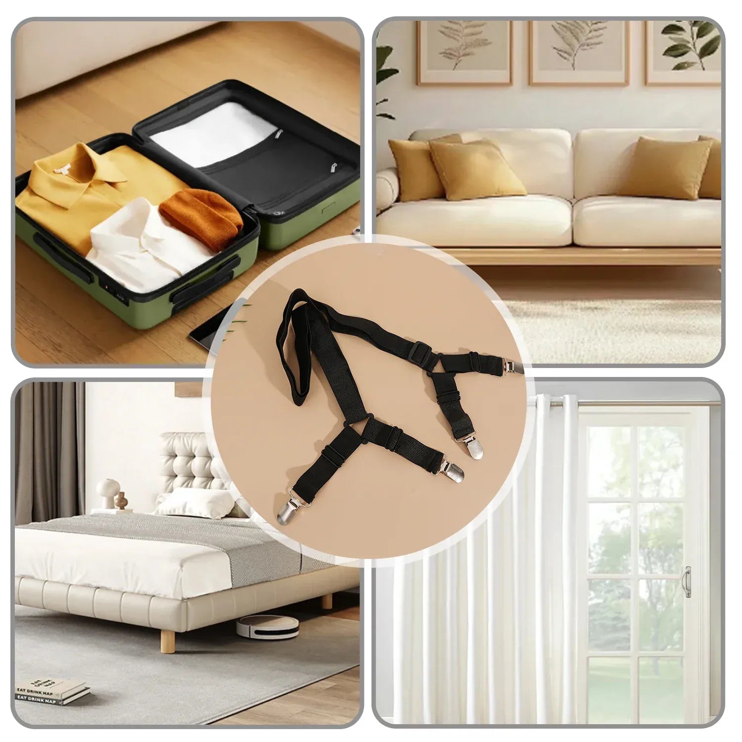 2/4 szt. regulowanych pasków do prześcieradła | Antypoślizgowe, elastyczne zapięcia do materaca i uchwyty na pokrowce
