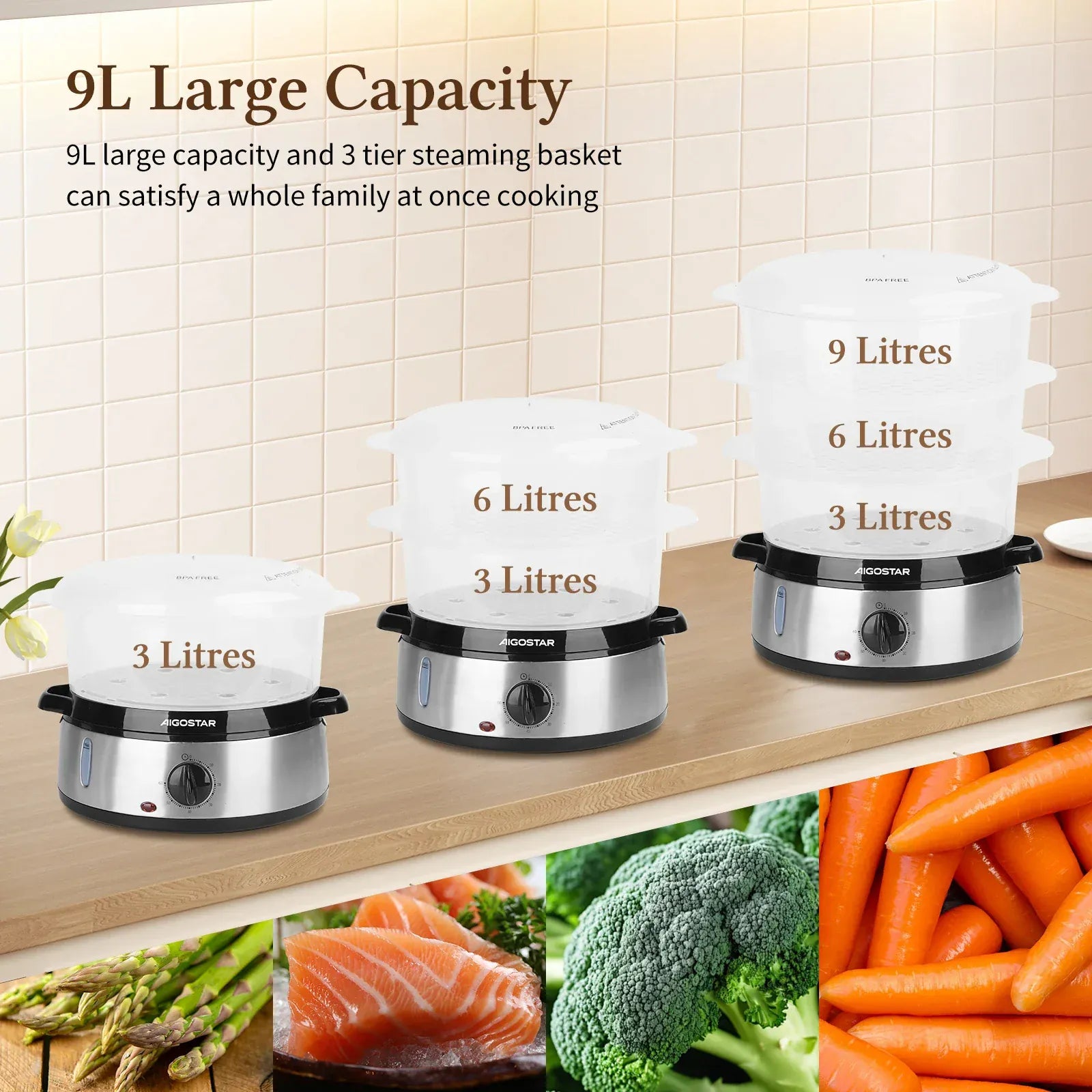 Parowar Aigostar 9L 800W – szybkie, zdrowe i wydajne gotowanie