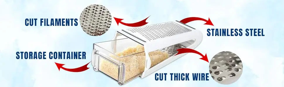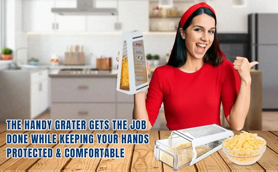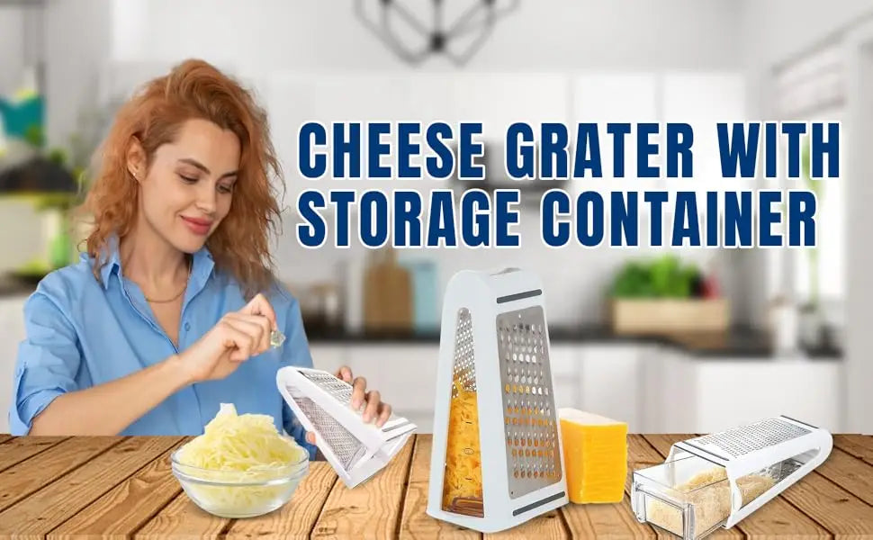 🧀 Funkcjonalność 2 w 1: Trze i przechowuje bezpośrednio we wbudowanym pojemniku — koniec z bałaganem!
