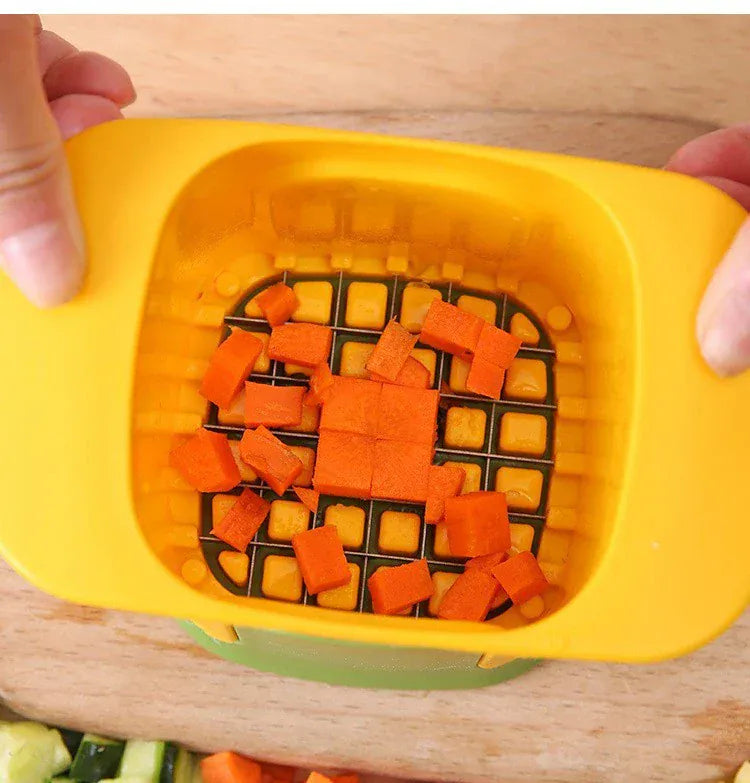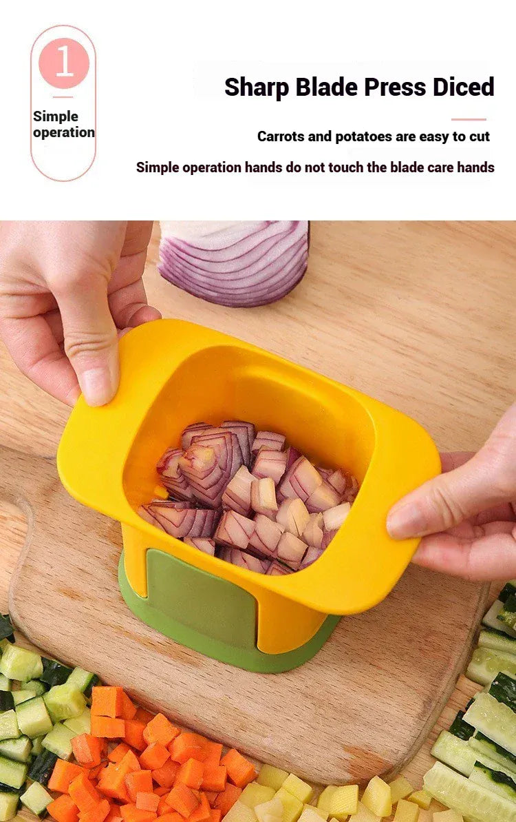 Uprość przygotowywanie posiłków dzięki wielofunkcyjnej krajalnicy i kostkarce do warzyw – idealnemu gadżetowi kuchennemu do łatwego krojenia, szatkowania i siekania ulubionych warzyw.