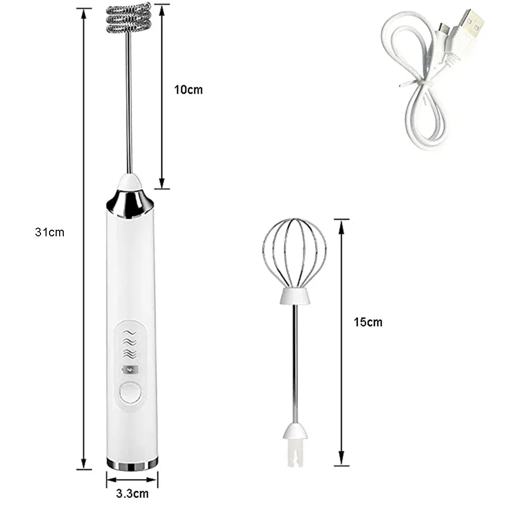 Elektryczny spieniacz do mleka, ręczny mikser z trzema prędkościami, ładowany przez USB, trzepaczka do kawy i trzepaczka do jajek