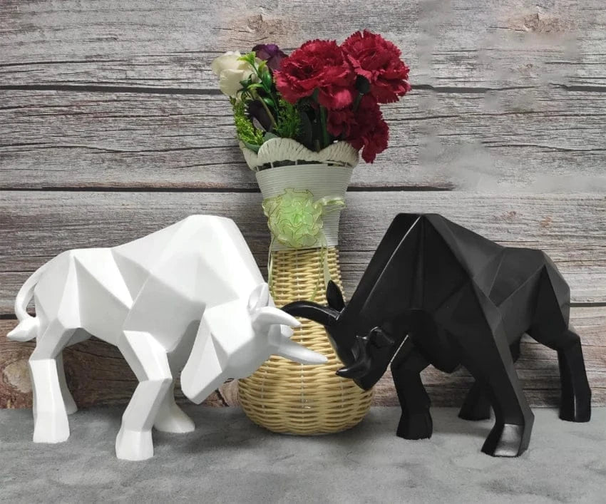 Żywiczna figura byka z Wall Street – nowoczesna rzeźba bizona do wystroju domu | Abstrakcyjna figurka zwierzęcia do biura, salonu i gabinetu